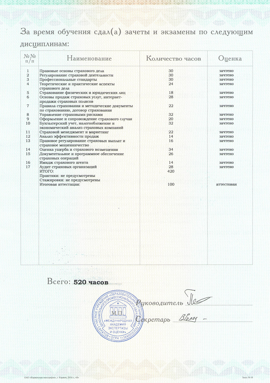 ЧУ «ООДПО «Международная Академия Экспертизы и Оценки» осуществляет переподготовку страховых